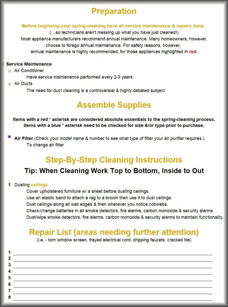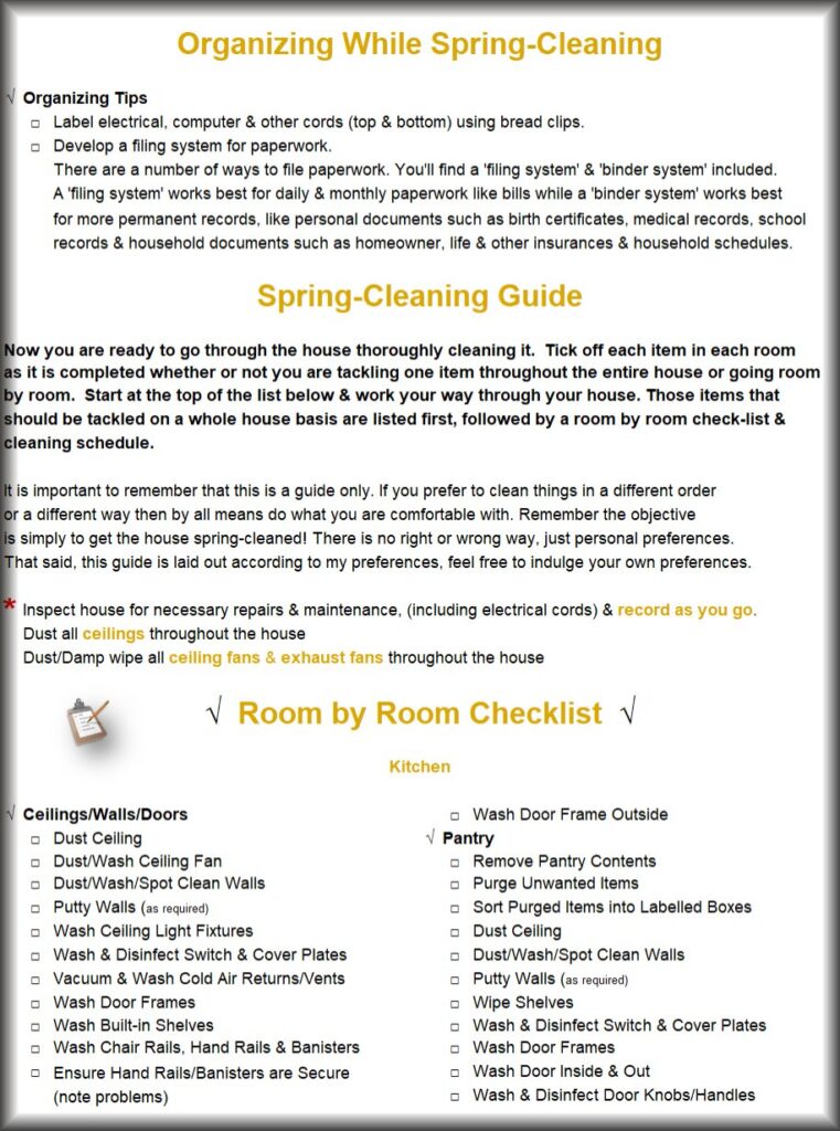 The following items are excerpts from the Heavenly Home Spring-Cleaning Manual
